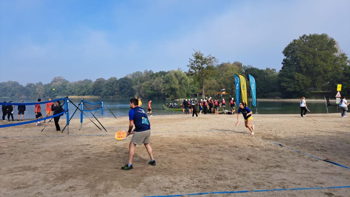 Ce challenge multisports interentreprises, organisé par nos collègues du groupe Ebra, a réuni environ 400 participants sur le site du Baggersee. Diverses épreuves ont été proposées comme le Dragon Boat, le foot à 7, le Mölkky, le Volley-Ball, le tennis beach, le biathlon en relai, etc.